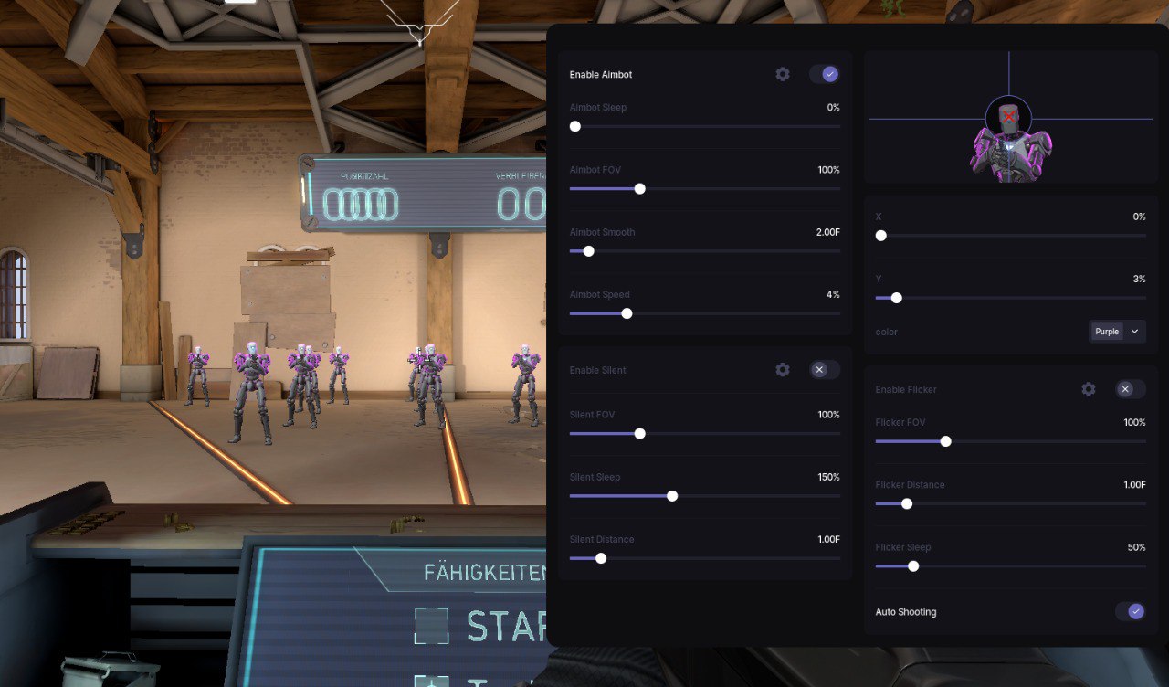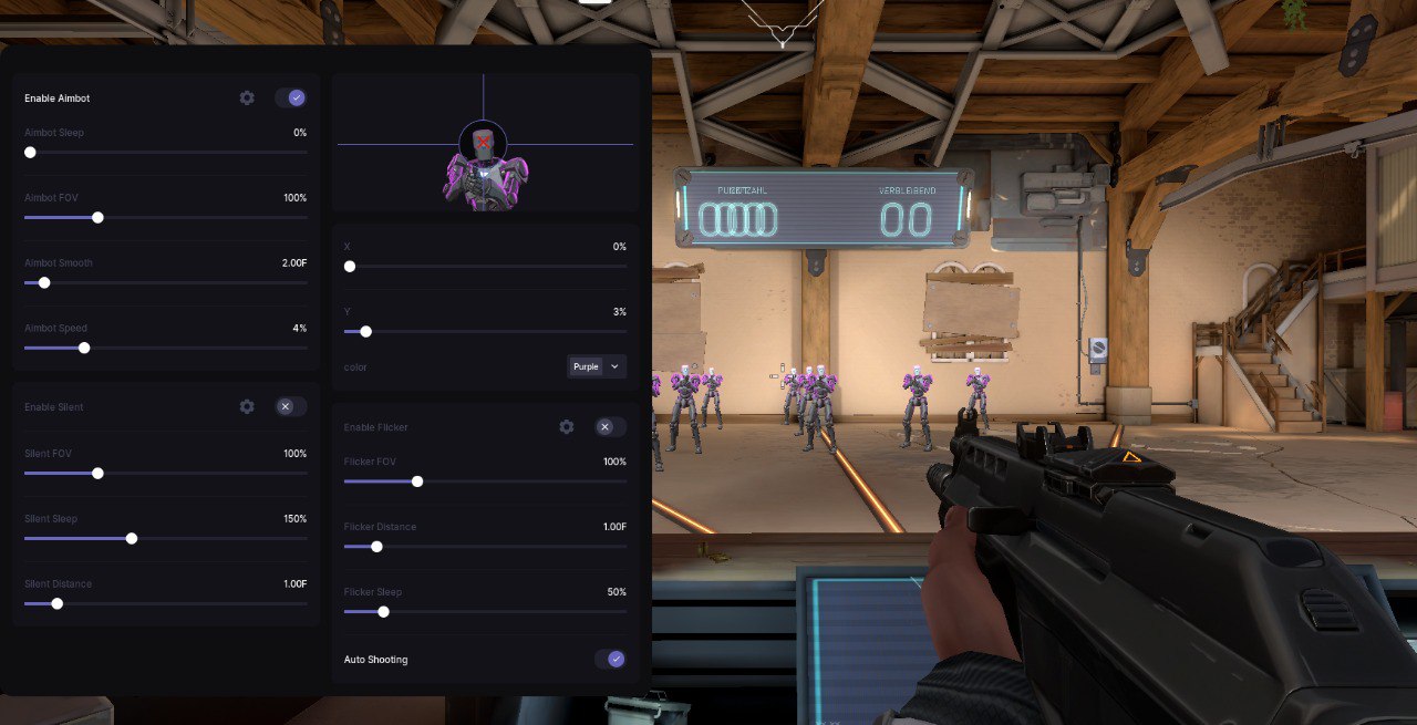 Memez Aimbot + Trigger — продвинутый колорбот для Valorant с аккуратным аимботом, Flick Bot и триггерботом. Поддерживает Silent Aim, сохранение конфигов и не снижает FPS. Надежный обход античита обеспечивает безопасность для легитной и агрессивной игры.