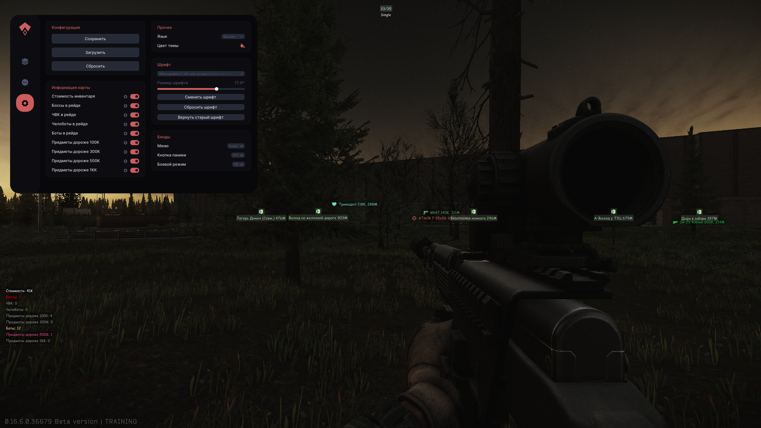 Authority Trainer — приватный трейнер для EFT, обеспечивающий тотальный контроль над рейдом. Продвинутый Wallhack и Loot ESP отображают предметы, контейнеры и квесты сквозь стены с данными о цене и дистанции. Функции бесконечной выносливости, ночного и теплового зрения, а также отключения отдачи гарантируют преимущество. Безопасность и гибкая настройка интерфейса делают этот софт идеальным инструментом для поиска лучшего лута и доминирования в любых ситуациях