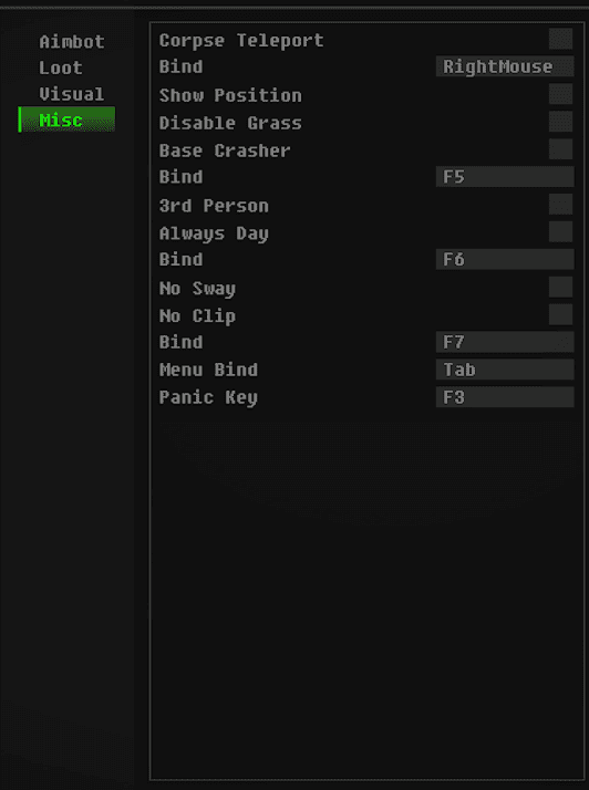 Corpses - позволяет видеть трупы и их содержимое